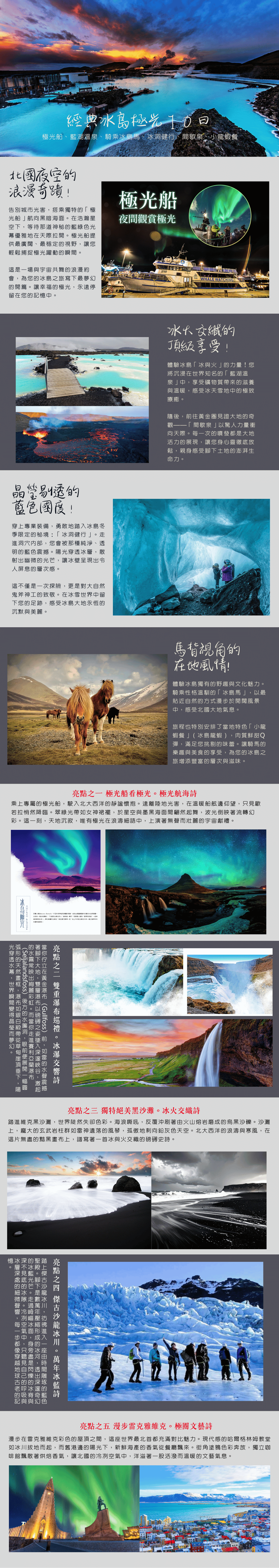 季節限定【經典冰島極光10日】極光船、藍湖溫泉、騎乘冰島馬、冰洞健行、間歇泉、小龍蝦餐
