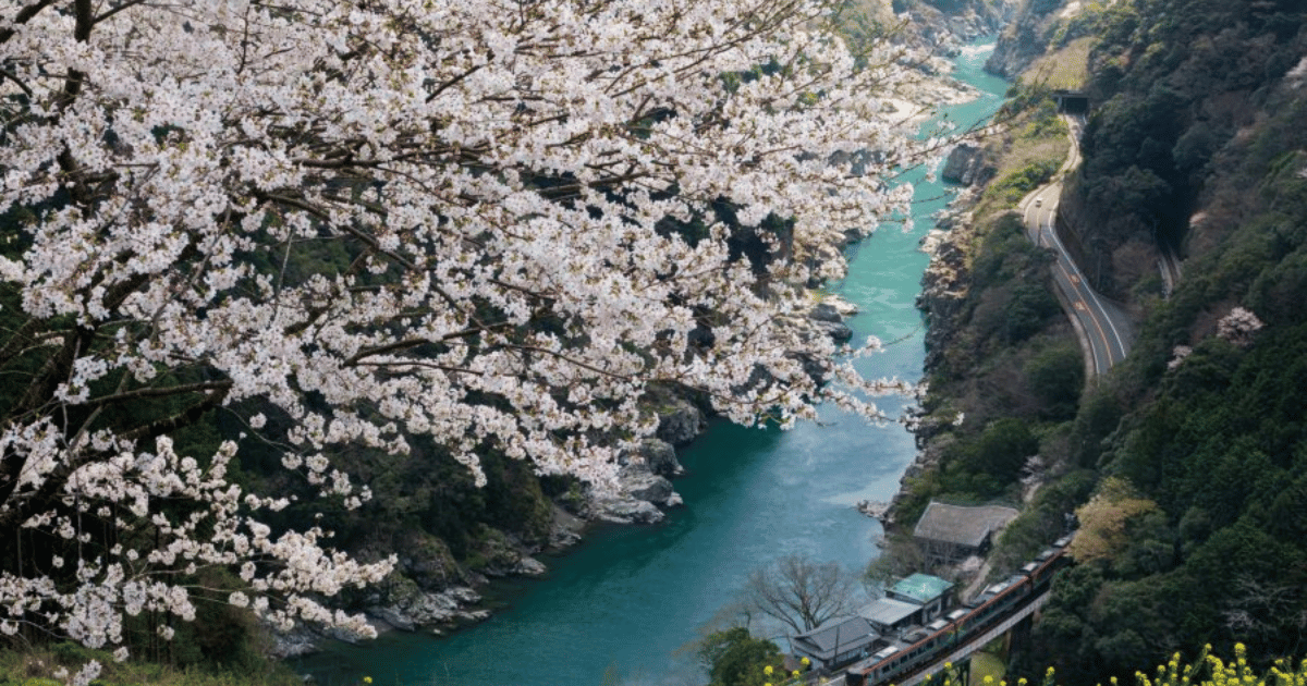 位於德島縣西部的吉野川上游,是經過2億年歲月雕刻而成的V字形溪谷。乘坐遊覽船可欣賞到兩岸高達50-100米的懸崖岩壁,清澈的藍綠色河水與奇岩怪石構成壯麗景觀,四季各有不同風情。