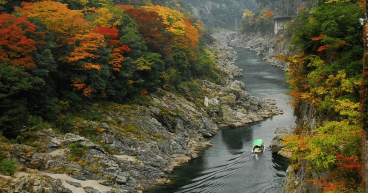 位於德島縣西部的吉野川上游,是經過2億年歲月雕刻而成的V字形溪谷。乘坐遊覽船可欣賞到兩岸高達50-100米的懸崖岩壁,清澈的藍綠色河水與奇岩怪石構成壯麗景觀。