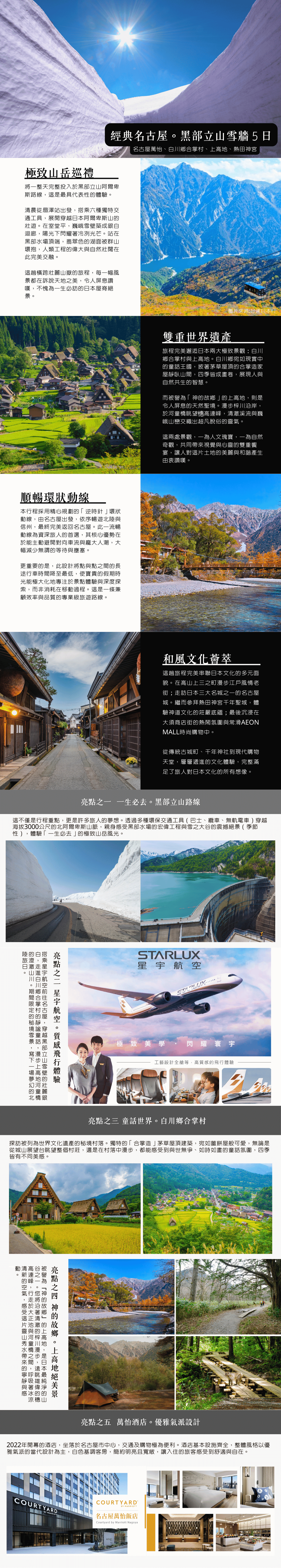 季節限定【經典名古屋.黑部立山雪牆5日】名古屋萬怡、白川鄉合掌村、上高地、熱田神宮