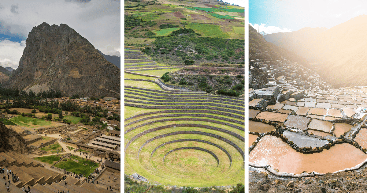 馬拉斯鹽田在印加帝國時期就以產鹽而興盛,由古至今世代相傳,以天然方法製鹽。居高臨下俯視,當陽光灑在一大片雪白的鹽田上時,顯得晶瑩閃耀,宛如置身人間仙境。位於秘魯庫斯科聖谷地區的Moray莫拉伊梯田,是印加王朝留下的藝術品,一圈一圈的巨大的同心圓繪出印加古文明的智慧,就如同其他印加遺跡一樣,仍有許多未解之謎,專家只能用推理來判定這些梯田的用途,蓋上神秘的色彩,莫拉伊梯田更加迷人。